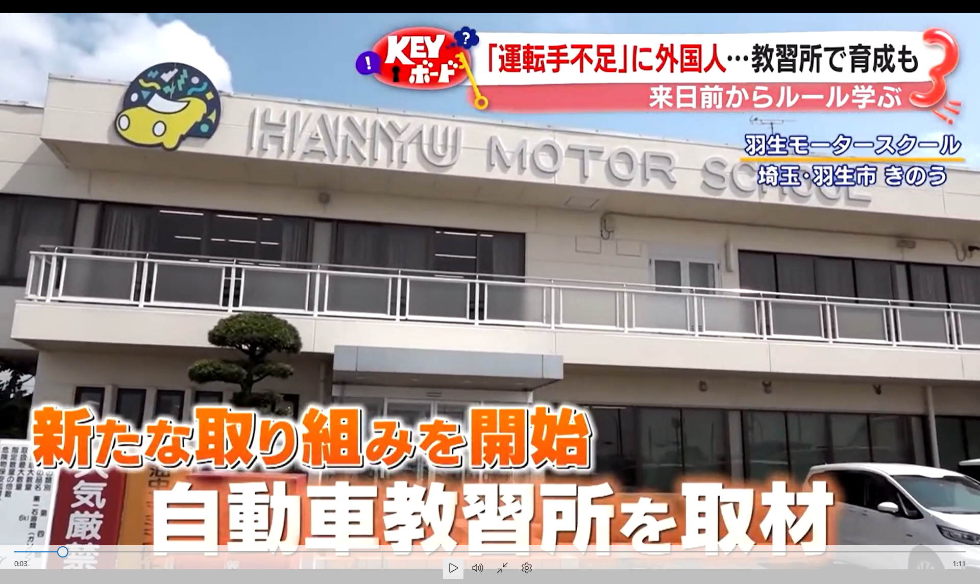 営業時間短縮のお知らせ 投稿日: 2025年9月19日 カテゴリー: ニュース ・9/21(日)は17:00で営業を終了いたします。 ※入校手続き受付は16:00まで ・9/23(火)の教習キャンセルの連絡は9/21(日)の17:00までにお願いいたします。 ご理解とご協力をお願いいたします。 羽生モータースクールの外国人受入れ教習がフジテレビ「サン!シャイン」で取り上げられました 投稿日: 2025年9月11日 カテゴリー: ニュース 10日(水)のフジテレビの「サン!シャイン」9:00~の中で 「技能実習生」の問題と、冒頭で ■羽生モータースクールの外国人受入れ教習、 ■ベトナムの教習所で行っている日本に来日する前の日本 の交通ルール取得教習 の取組みが放映されました。 検定員・指導員審査に15名が合格! 投稿日: 2025年9月6日 カテゴリー: ニュース 9月5日(金)、令和7年度第2回技能検定員等資格審査の合格発表があり、 神山さん(普通)、後藤さん(検定員普通)、矢部豊治さん(検定員普通)、富岡さん(検定委員準中型)、新井晶己さん(検定員大型特殊)、解良さん(検定員普通二輪)、中島さん(検定員大型二輪)、大前さん(準中型)、木村匠吾さん(中型)、星野さん(中型)、遠藤さん(中型)、鈴木さん(大型)、川田さん(けん引)、阿藤さん(普通二輪)、池澤さん(大型二輪)と、難しい試験にもかかわらず受験した16名中15名が合格し、合格率93.8%を達成しました♪ (写真は前列左から遠藤さん、木村匠吾さん、富岡さん、解良さん、神山さん、川田さん。後列左から鈴木さん、池澤さん、矢部豊治さん、後藤さん、大前さん、中島さん、星野さんです) 第17回高校生ライブ MUSIC DAYS 2025北埼玉大会の第3回出場者同窓会♪ 投稿日: 2025年8月30日 カテゴリー: ニュース 8月30日(土)、第17回高校生ライブ MUSIC DAYS 2025北埼玉大会の第3回出場者同窓会が開催され、出場6チーム21名の皆様にご参加して頂きました♪ 参加者していただいた全員に①大会のフルバージョン収録版DVD、②チームの写真、③特製色紙配られ、当日の大会ダイジェスト版上映で大いに盛り上がっていました! ご参加頂いた皆様、有難うございました♪ 23日、「今夜解禁!サンドの禁断の一騎打ち」が放映されました 投稿日: 2025年8月24日 カテゴリー: ニュース 23日、21時からのフジテレビ系の番組「土曜プレミアム・今夜解禁!サンドの禁断の一騎打ち◆大好評第3弾!」の中で、 先日、羽生モータースクールのコース収録された『大型バスの運転手同士がスピードとテクニックを競い合う「大型バス運転手一騎打ち」』が放映されました。 バス運転手の皆様の驚愕テクニックが驚きです! 第17回高校生ライブ MUSIC DAYS 2025北埼玉大会の第2回出場者同窓会♪ 投稿日: 2025年8月23日 カテゴリー: ニュース 8月23日(土)、第17回高校生ライブ MUSIC DAYS 2025北埼玉大会の第2回出場者同窓会が開催され、出場4チーム19名の皆様にご参加して頂きました♪ 参加者していただいた全員に①大会のフルバージョン収録版DVD、②チームの写真、③特製色紙配られ、当日の大会ダイジェスト版上映で大いに盛り上がっていました! ご参加頂いた皆様、有難うございました♪ 羽生MSコースで収録された「今夜解禁!サンドの禁断の一騎打ち」が放映されます 投稿日: 2025年8月23日 カテゴリー: ニュース 本日21時からフジテレビ系の番組「土曜プレミアム・今夜解禁!サンドの禁断の一騎打ち◆大好評第3弾!」の中で、 先日、羽生モータースクールのコース収録された『大型バスの運転手同士がスピードとテクニックを競い合う「大型バス運転手一騎打ち」』が放映されます。 羽生モータースクールのコースが出てきますので、もしお時間があるようでしたらご覧ください。 https://www.fujitv.co.jp/b_hp/kindan-ikkiuchi/index.html 行田商工会議所主催の「まちゼミ」の中で「ドローン入門講座」が開催されました 投稿日: 2025年8月10日 カテゴリー: ニュース 8月9日(土)、10日(日)10:00~12:00、行田ドローンスクールにおいて行田商工会議所主催の「まちゼミ(プロから教わる街のゼミナール)」の中で「ドローン入門講座」が開催されました。 ご参加いただいた皆様、有難うございました。 夏季休業のお知らせ 投稿日: 2025年7月31日 カテゴリー: ニュース 8月14日(木)、15日(金) 誠に勝手ながら上記期間は休業とさせていただきます。 8月16日(土)の予約の変更・キャンセルは 8月13日(水)20時までにお願いいたします。 8月16日(土)の送迎バスの予約は8月13日(水)15時締め切りです。 ご注意ください! ご理解とご協力をお願いいたします。 羽生市三田ヶ谷公民館で「ドローン体験教室」が開催されました 投稿日: 2025年7月31日 カテゴリー: ニュース 7月31日(水)、羽生市三田ヶ谷公民館(羽生市弥勒634-1 TEL 048-565-0040)において「ドローン体験教室」が開催され、講師として行ってきました♪ 皆さん真剣にドローンに関する法令や運用方法を学んで頂いた後、ドローンによる操縦技能では年代を問わず、楽しそうに操縦体験して頂きました。 参加された皆様、ご協力有難うございました。 投稿ナビゲーション 1 2 3 … 78 